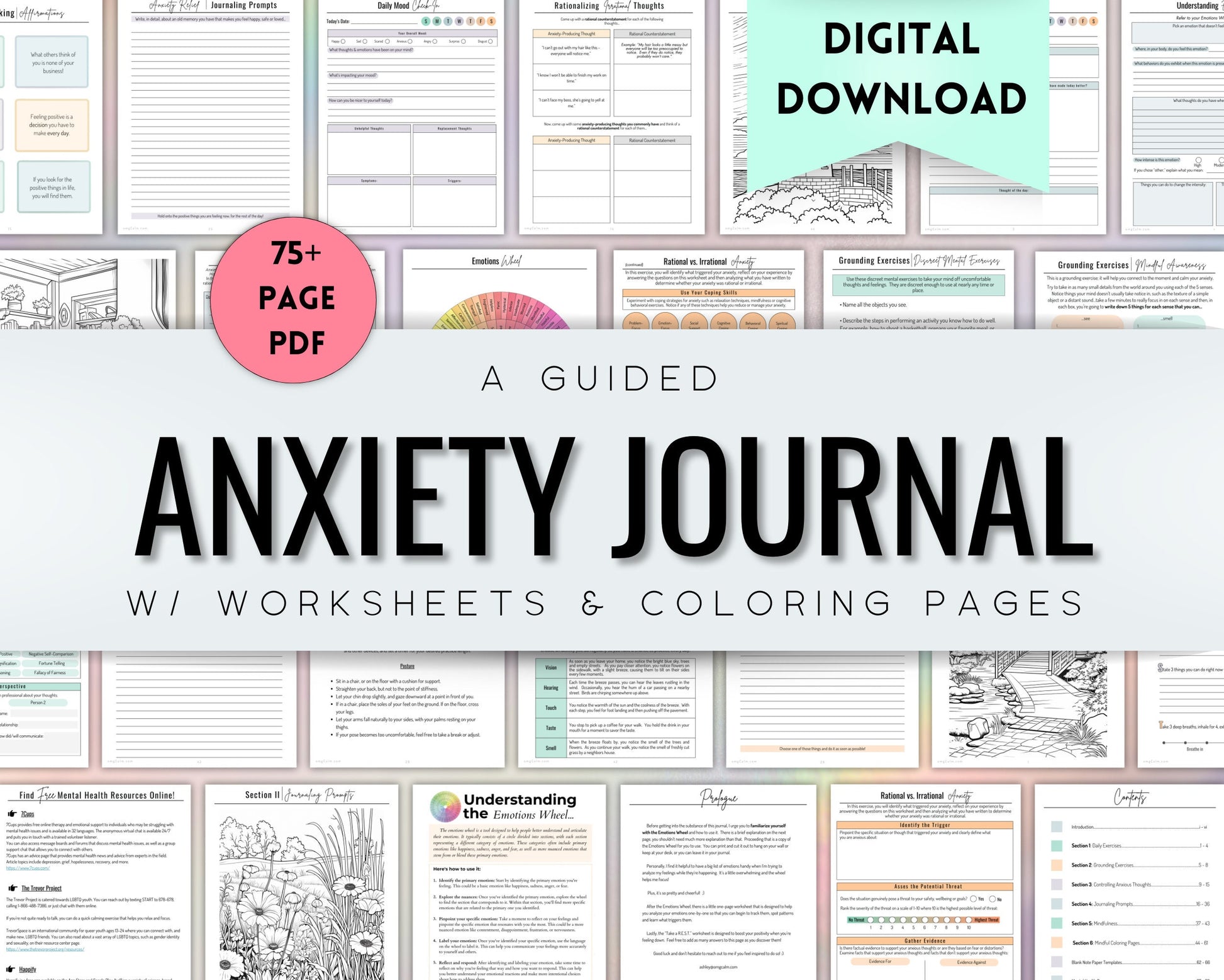 Digital Guided Anxiety Journal with Worksheets & Coloring Pages