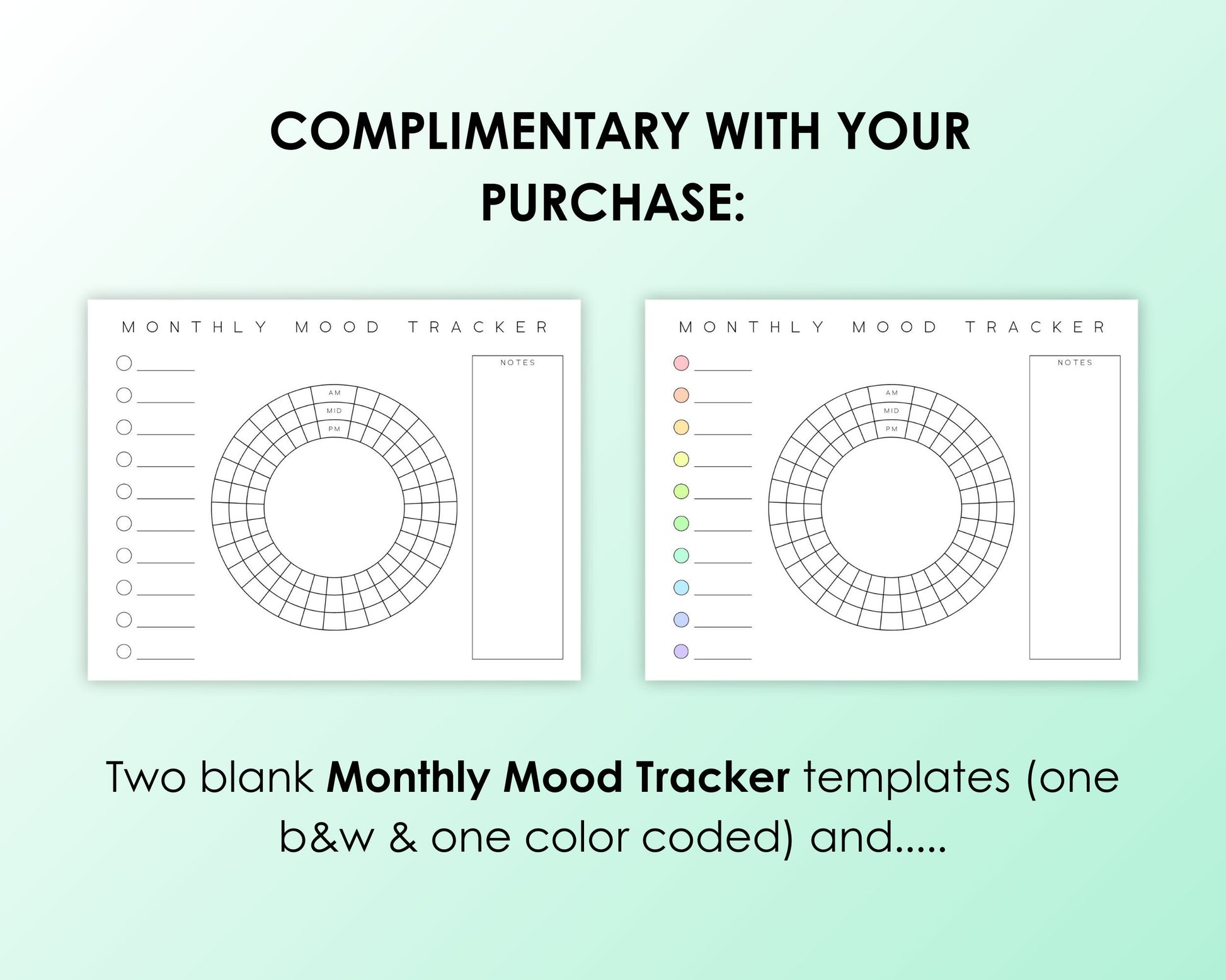 ⭐Also, with this item, enjoy a free Monthly Mood Tracker in a 12-page calendar format you can use year after year. There are also 2 blank versions if you don't want to use them per month (one has the bubbles pre-filled with color, the other is blank).