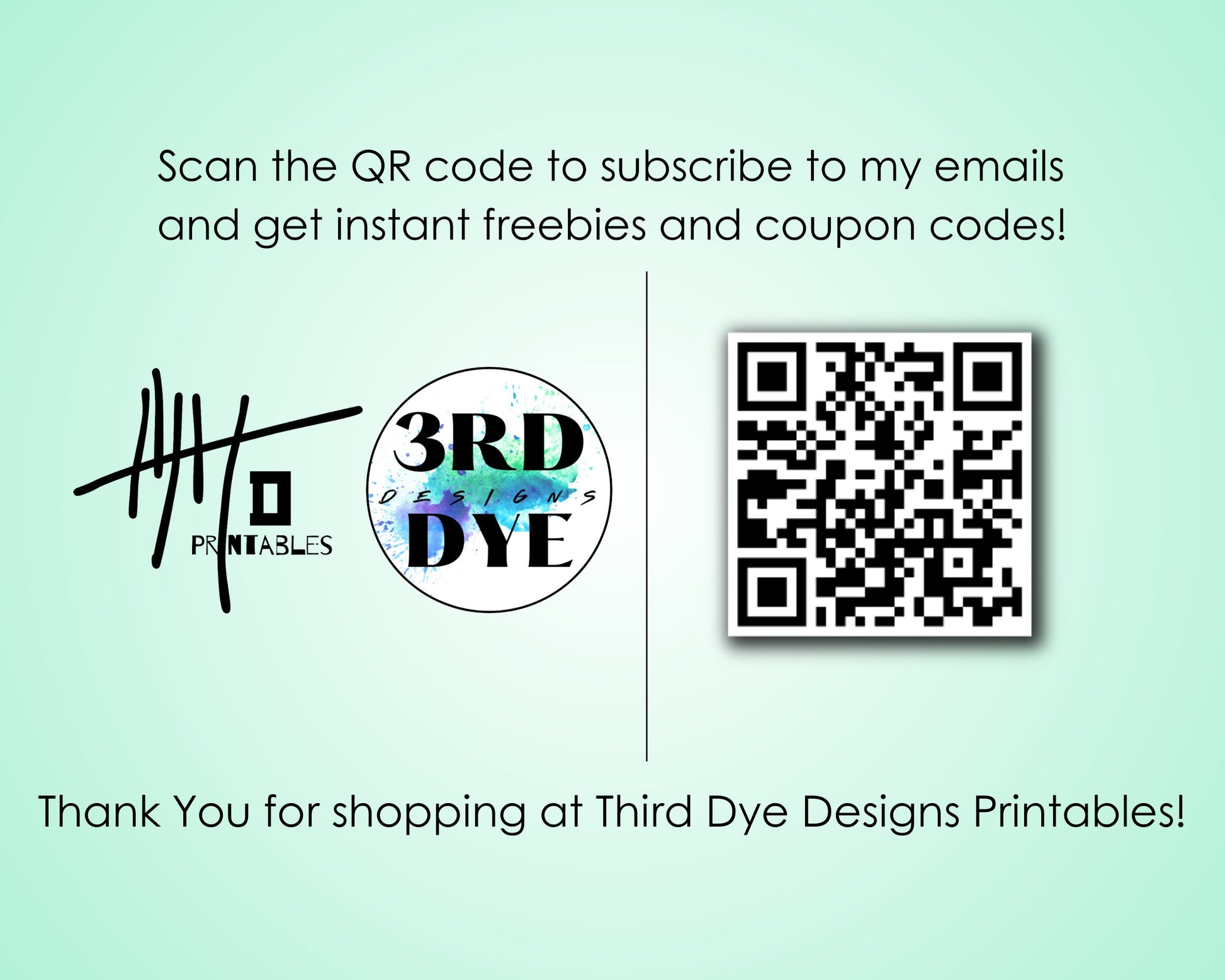 There is a no returns or refunds policy on all digital downloads purchased through Etsy, however if there is a problem with your purchase or you have questions or need help, please don't hesitate to reach out to me through my Etsy shop (https://etsy.com/shop/thirddyedesign) or by email at ashley@thirddyedesigns.com and I will do my best to help. If you email me, make sure to put something like, "printables help" in the subject line.