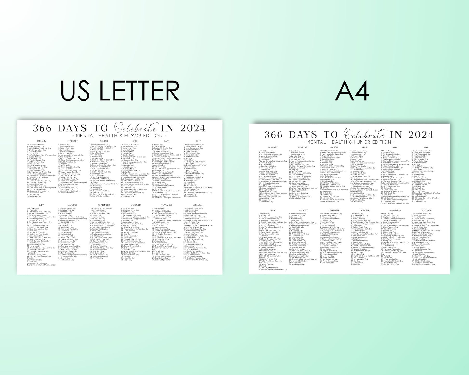 A one-page yearly calendar with 366 mental health and healthy humor themed days to inspire ideas for your social media content!
