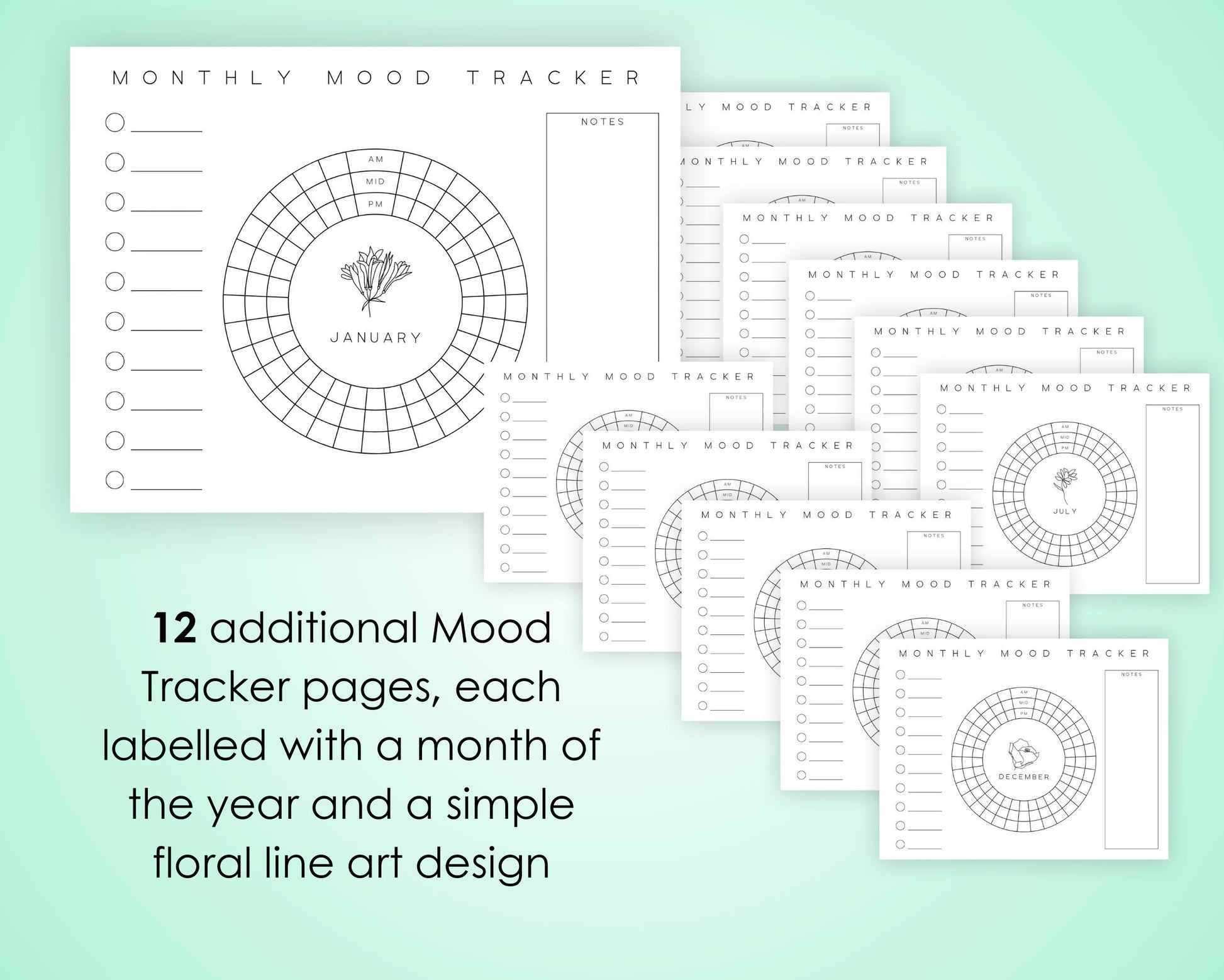 ✔ 2 .zip files containing your FREE 14-page Monthly Mood Trackers in the following formats: