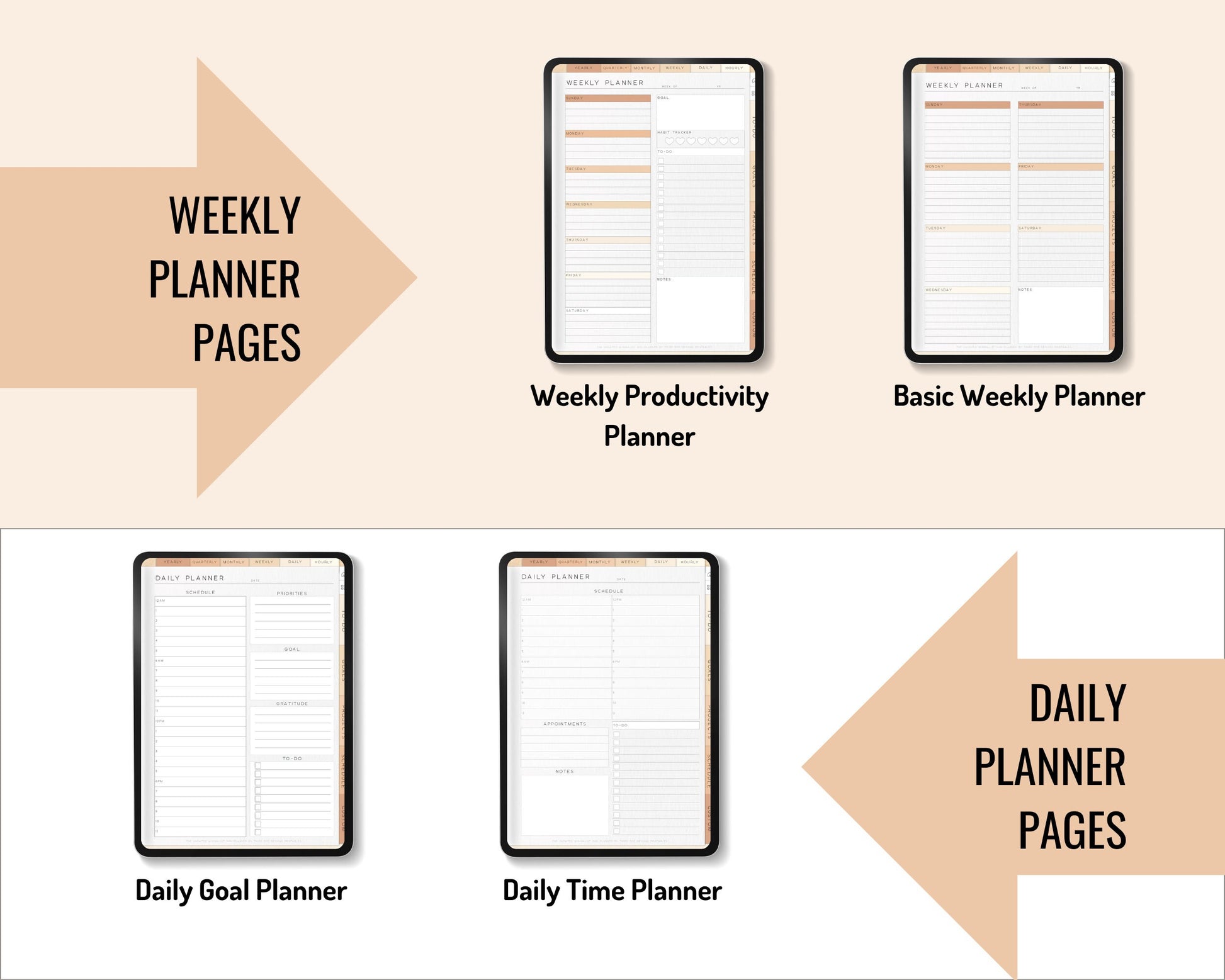 Easy-to-use, fully hyperlinked pdf planner crafted for use in Good Notes, NoteIn, Xodo, Samsung Notes, etc. Planner size is 1600 x 2200px and is complete with multiple layouts of the following: