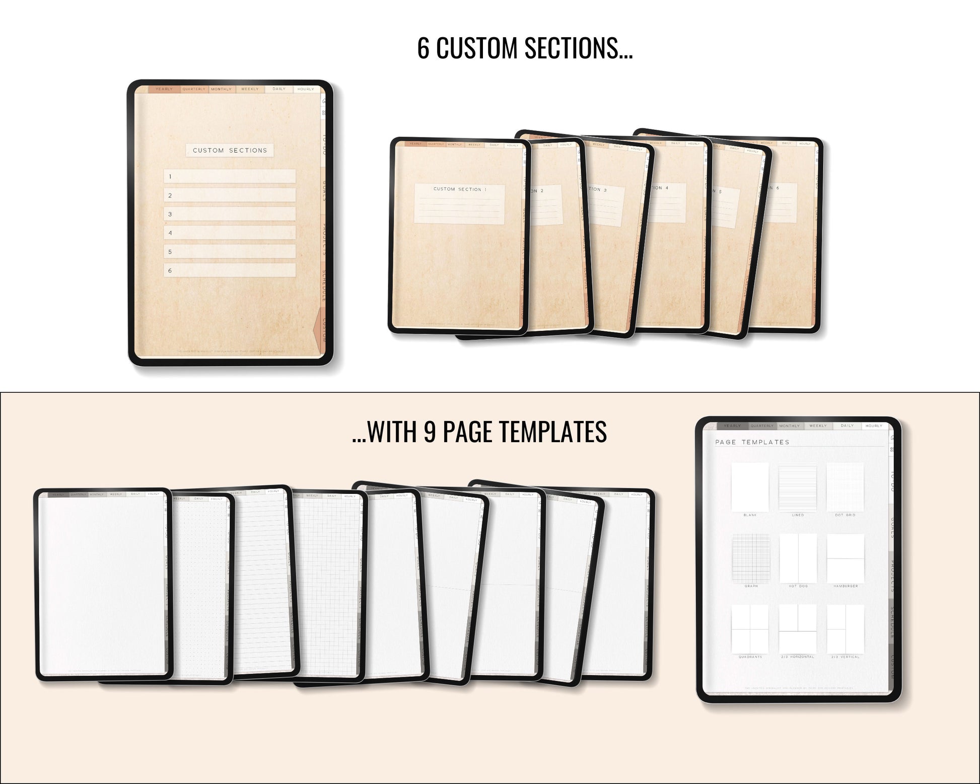 🔹6 blank custom sections for you to mix & match any of the planner pages or use any of the 9 blank paper templates included