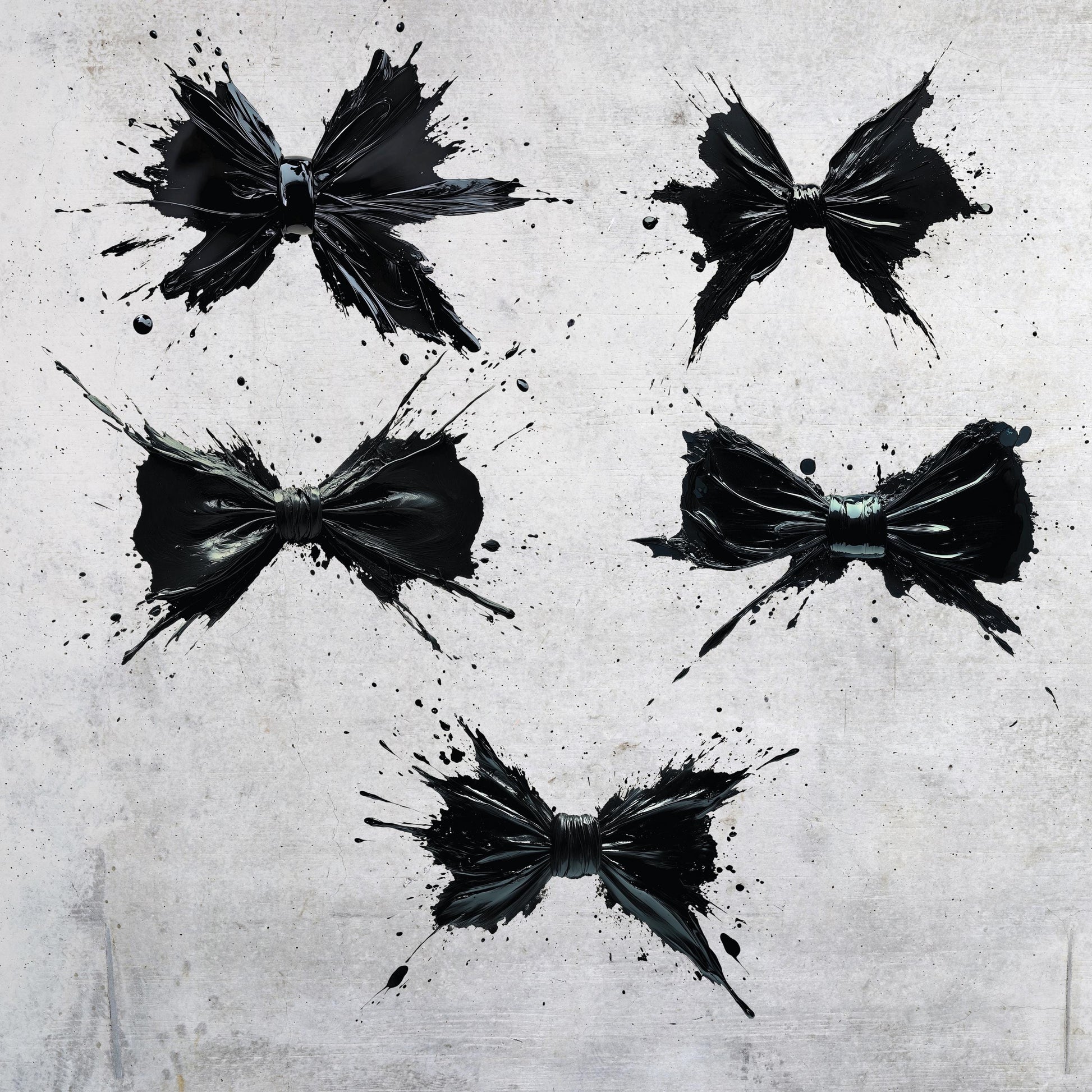 Bring your designs to life with this bundle of 5 unique paint splatter coquette bow tie PNG and SVG images!