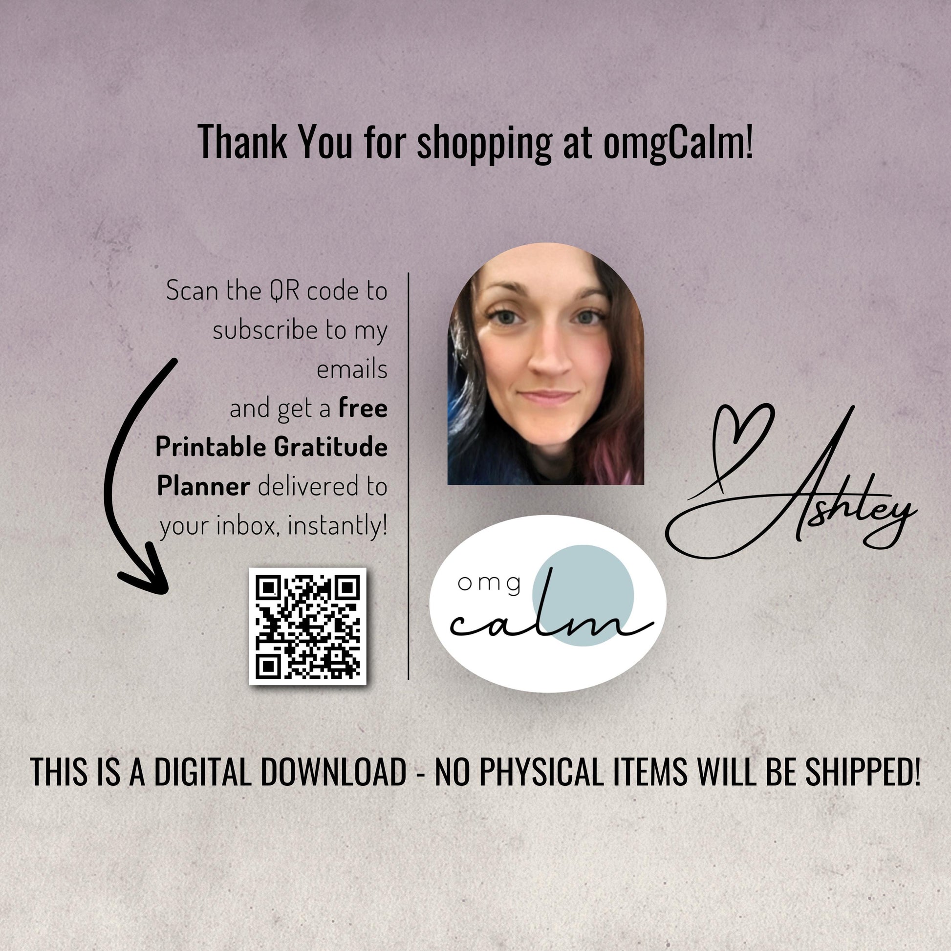 There is a no returns or refunds policy on all digital downloads, however if there is a problem with your purchase or you have questions or need help, please don't hesitate to reach out to me via email at ashley@omgcalm.com and I will do my best to help. If you email me, make sure to put something like, "printables help" in the subject line.