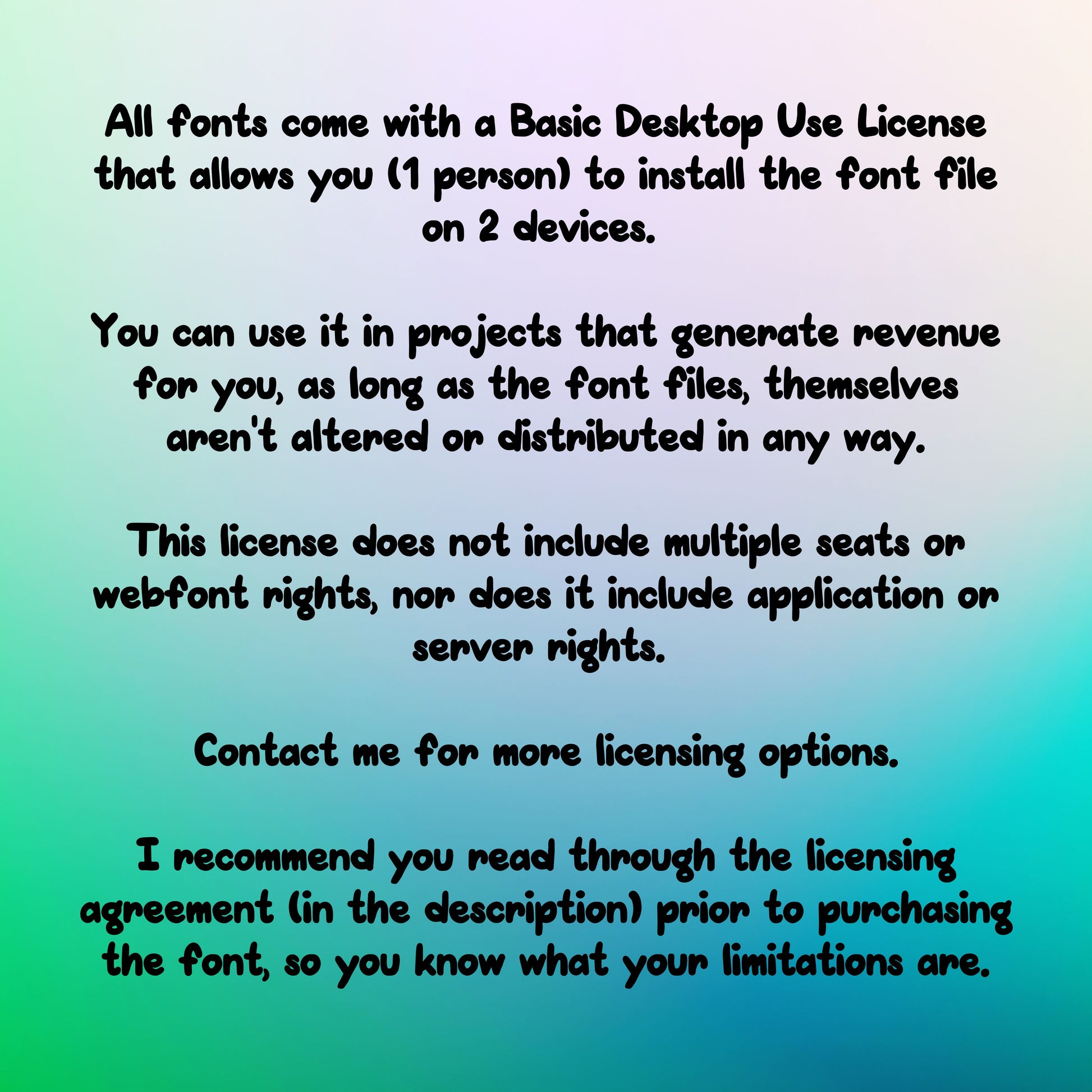 This font is unique in that I created it from my handwriting and it is 100% original.