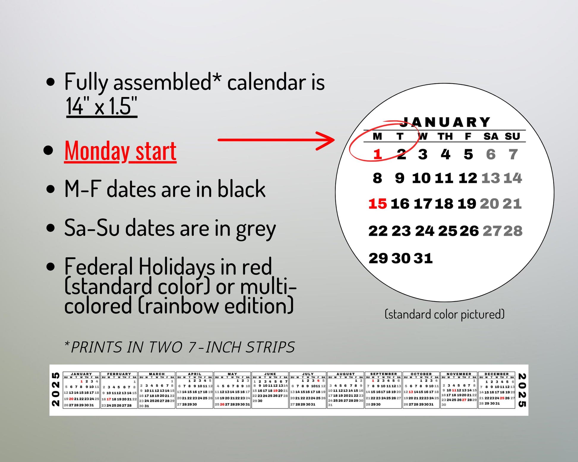 This download includes both Sunday and Monday start and is in size: 14" x 1.5"