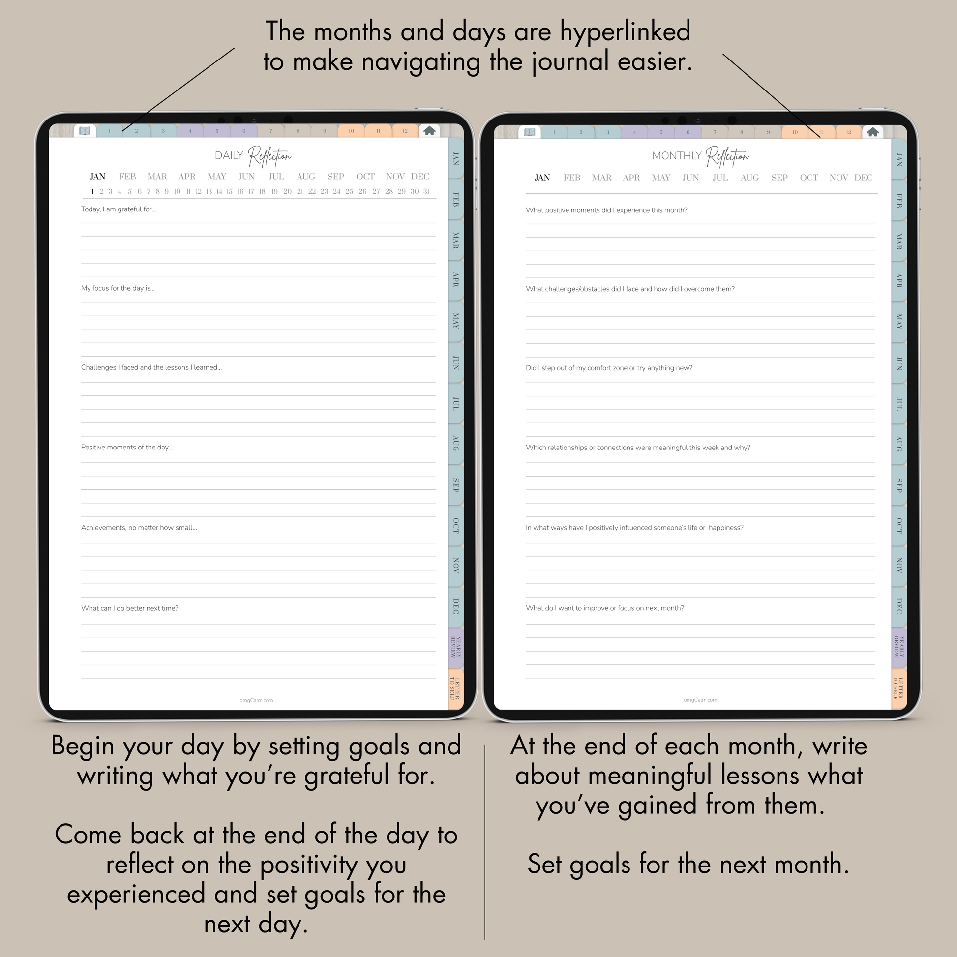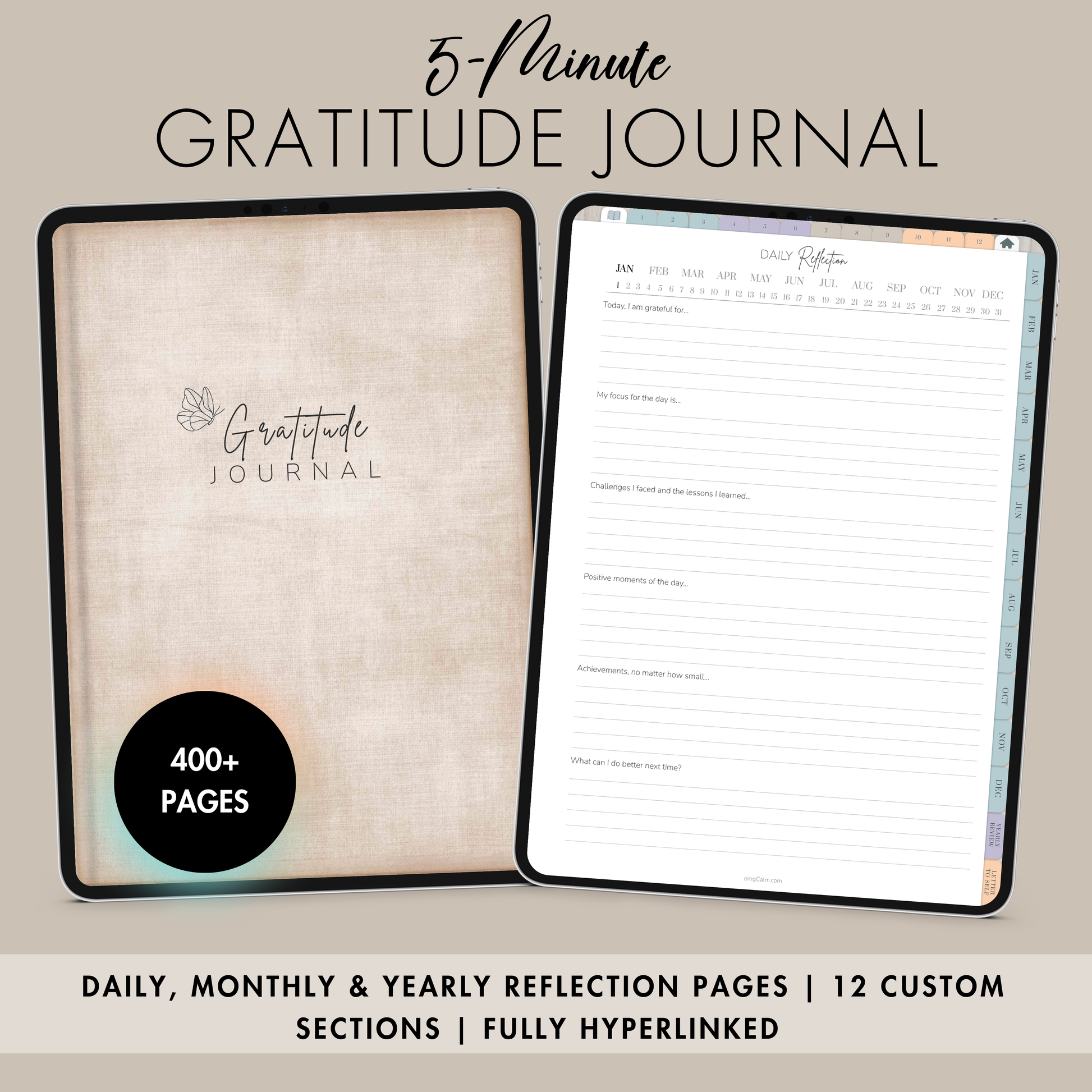 Cultivate gratitude daily with this Digital Gratitude Journal featuring over 400 hyperlinked pages. Enjoy daily prompts, 12 monthly reflection pages, a yearly review, and a special space to write a letter to your future self. Customize your experience with 12 sections, offering 7 page templates. Choose from 50 stylish cover options to personalize your journal in apps like GoodNotes or Noteshelf.