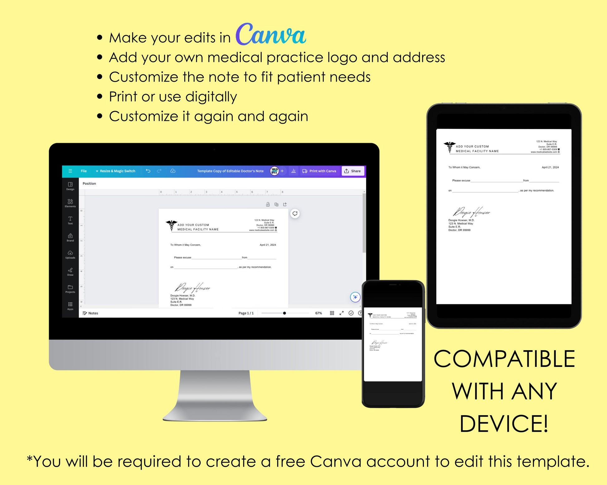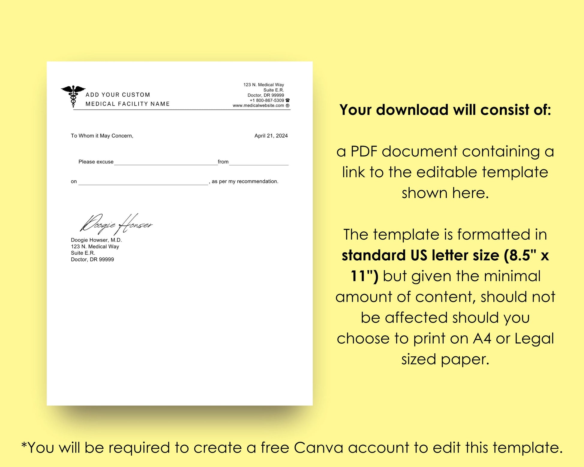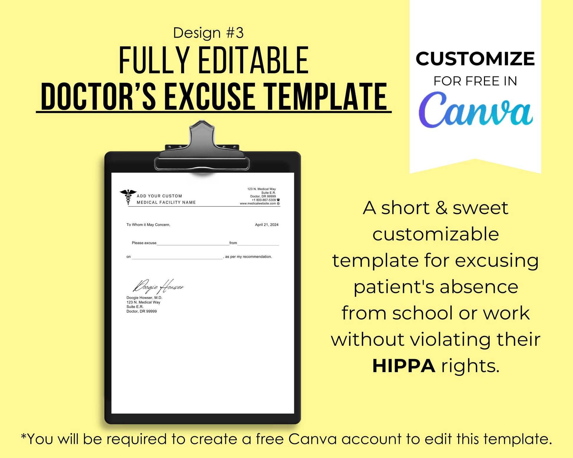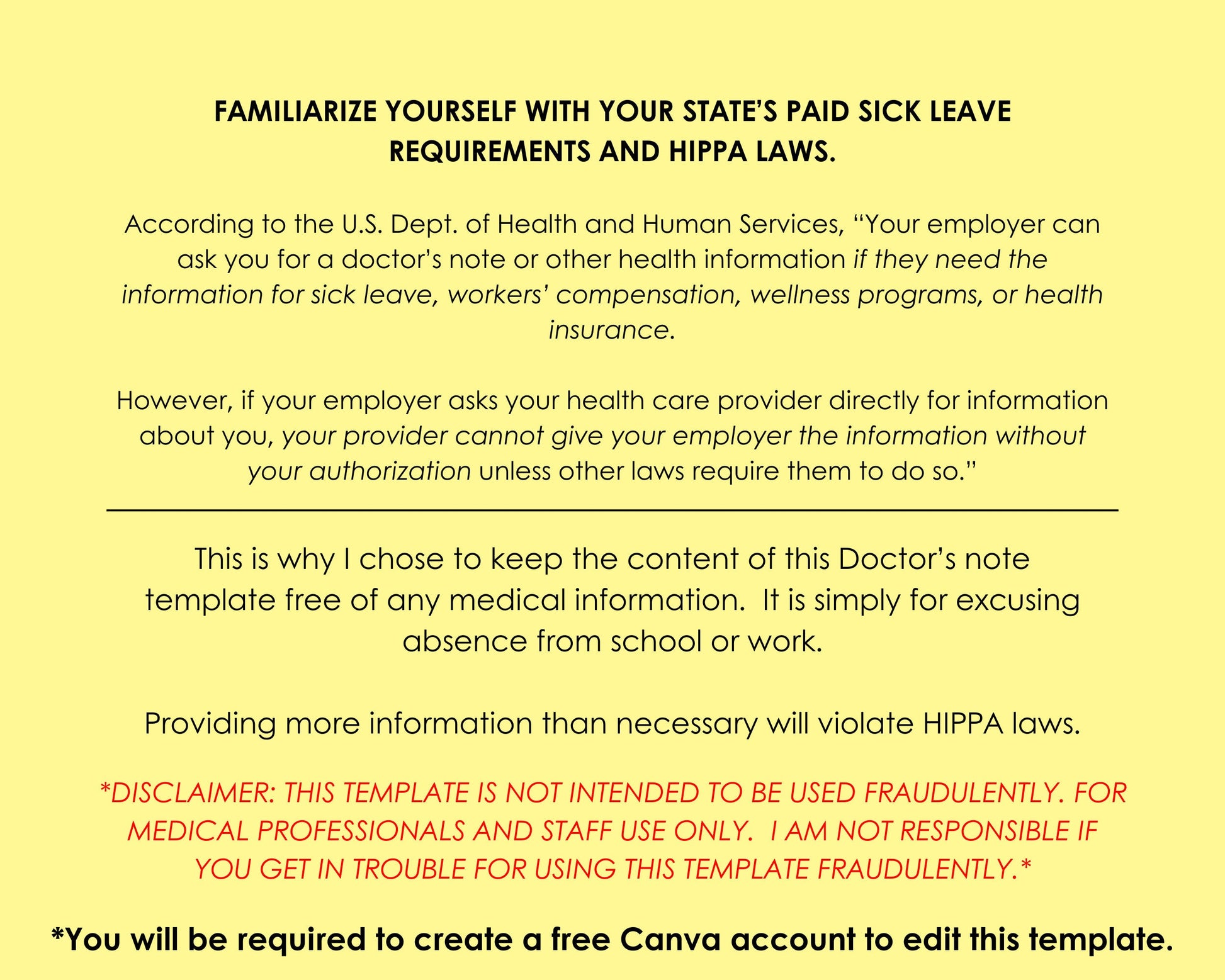 A simple, 100% editable doctor's note template to excuse patient's absence from school or work.