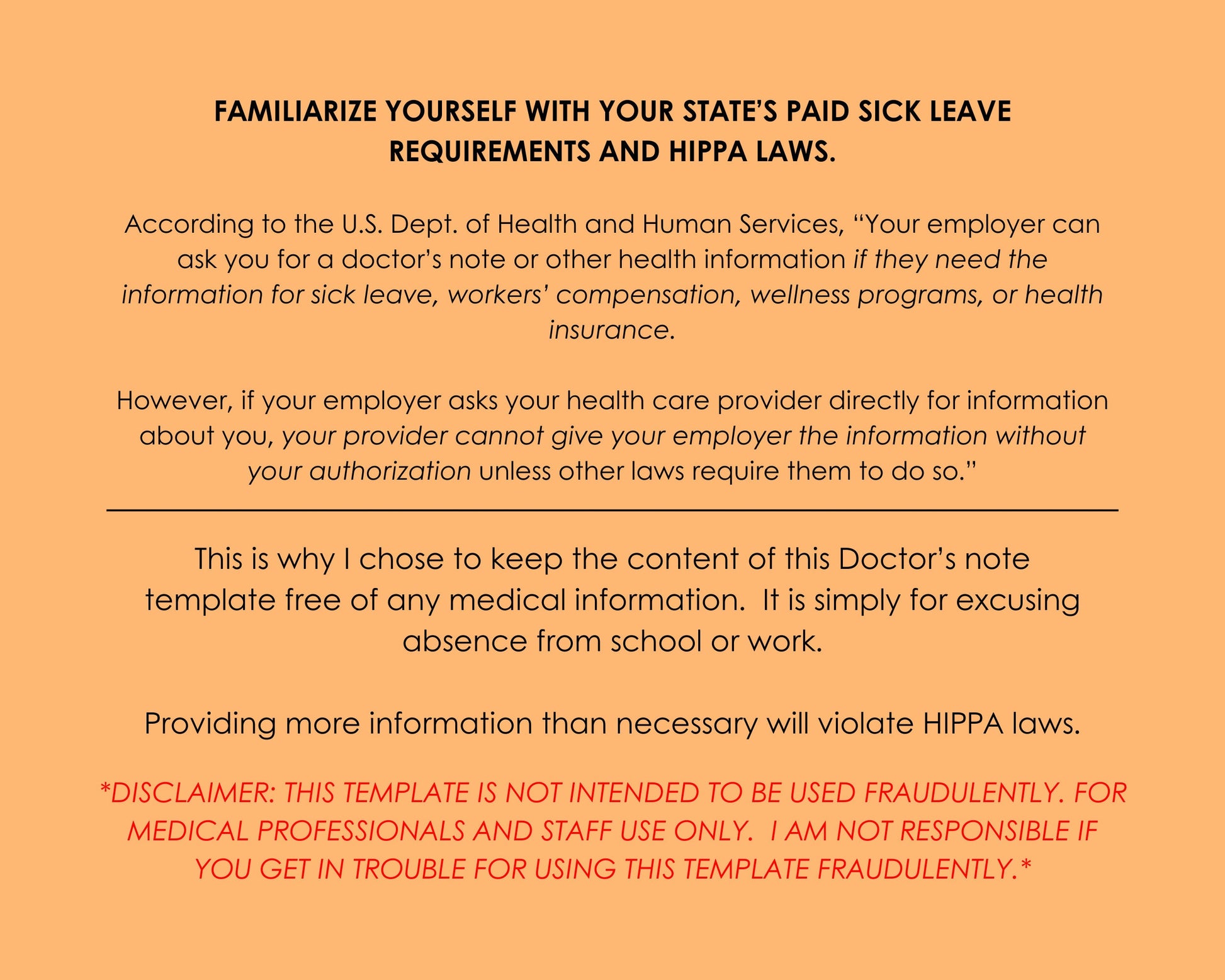 Be sure to check your local state laws on when it's legal for an employer to ask for a doctor's note. It should simply state when the patient can return to work. Don't violate HIPPA.