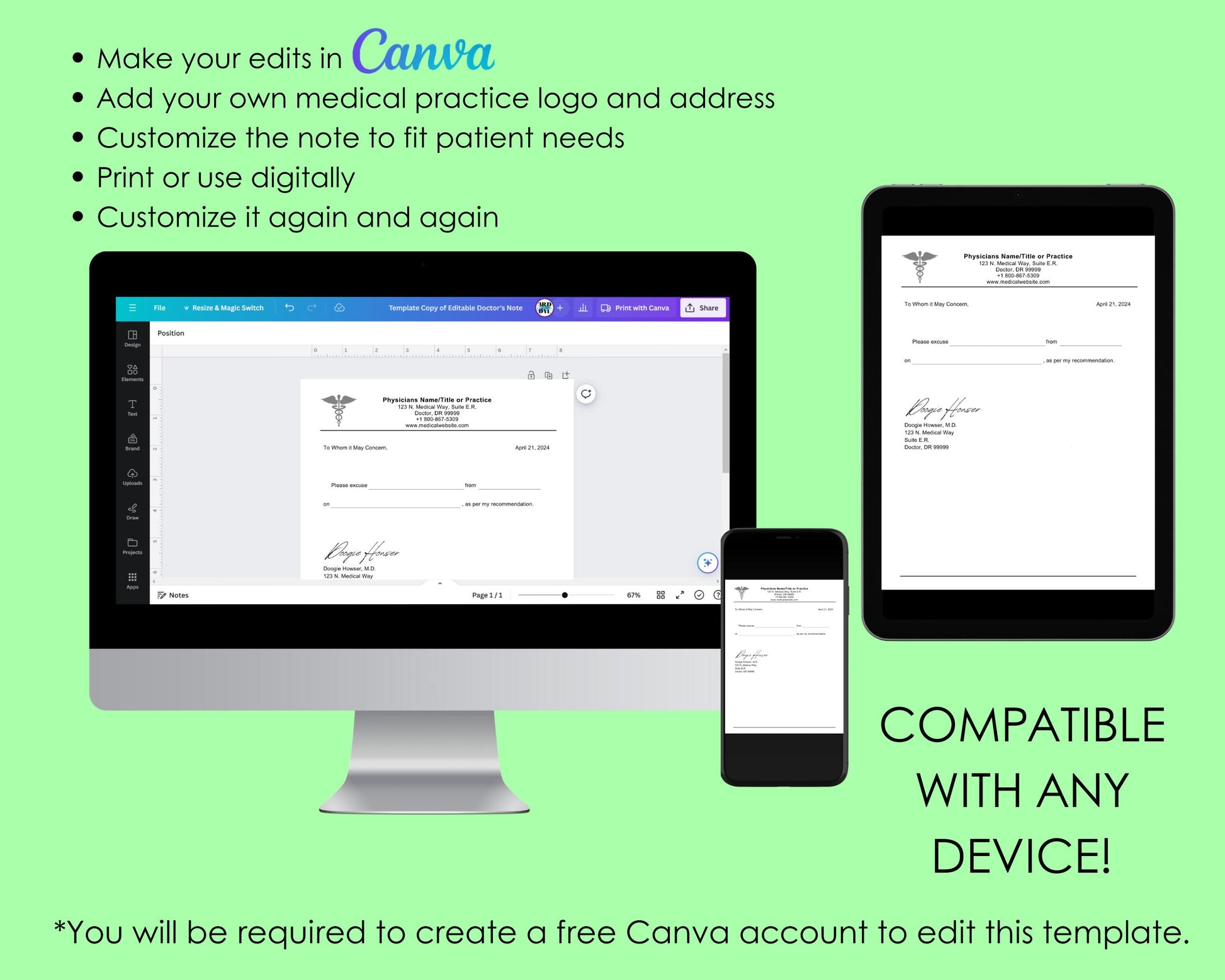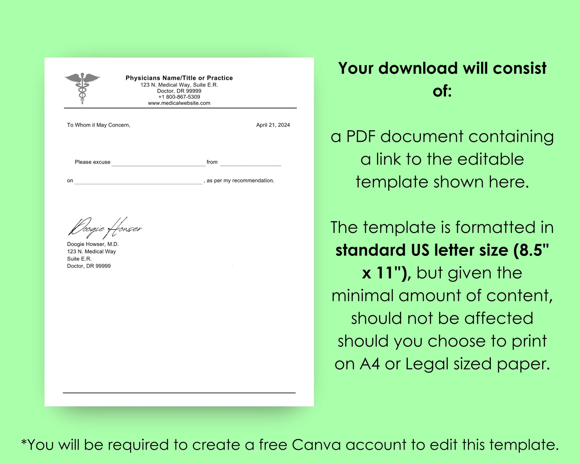 A simple, 100% editable doctor's note template to excuse patient's absence from school or work.