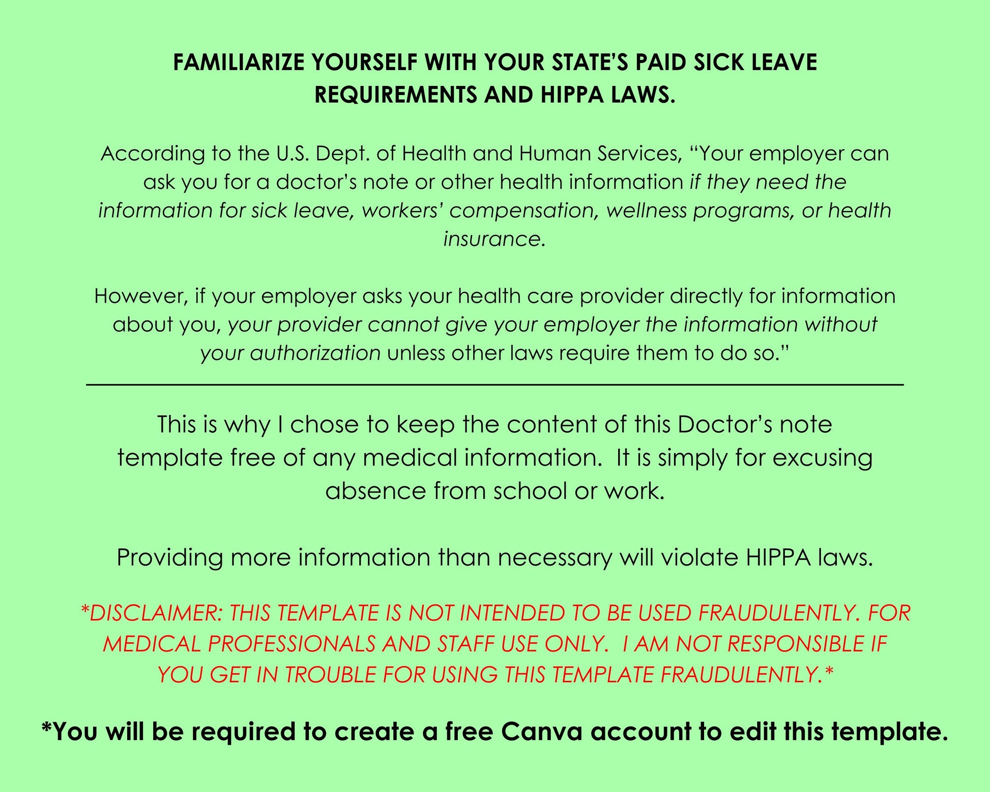 Be sure to check your local state laws on when it's legal for an employer to ask for a doctor's note. It should simply state when the patient can return to work. Don't violate HIPPA.