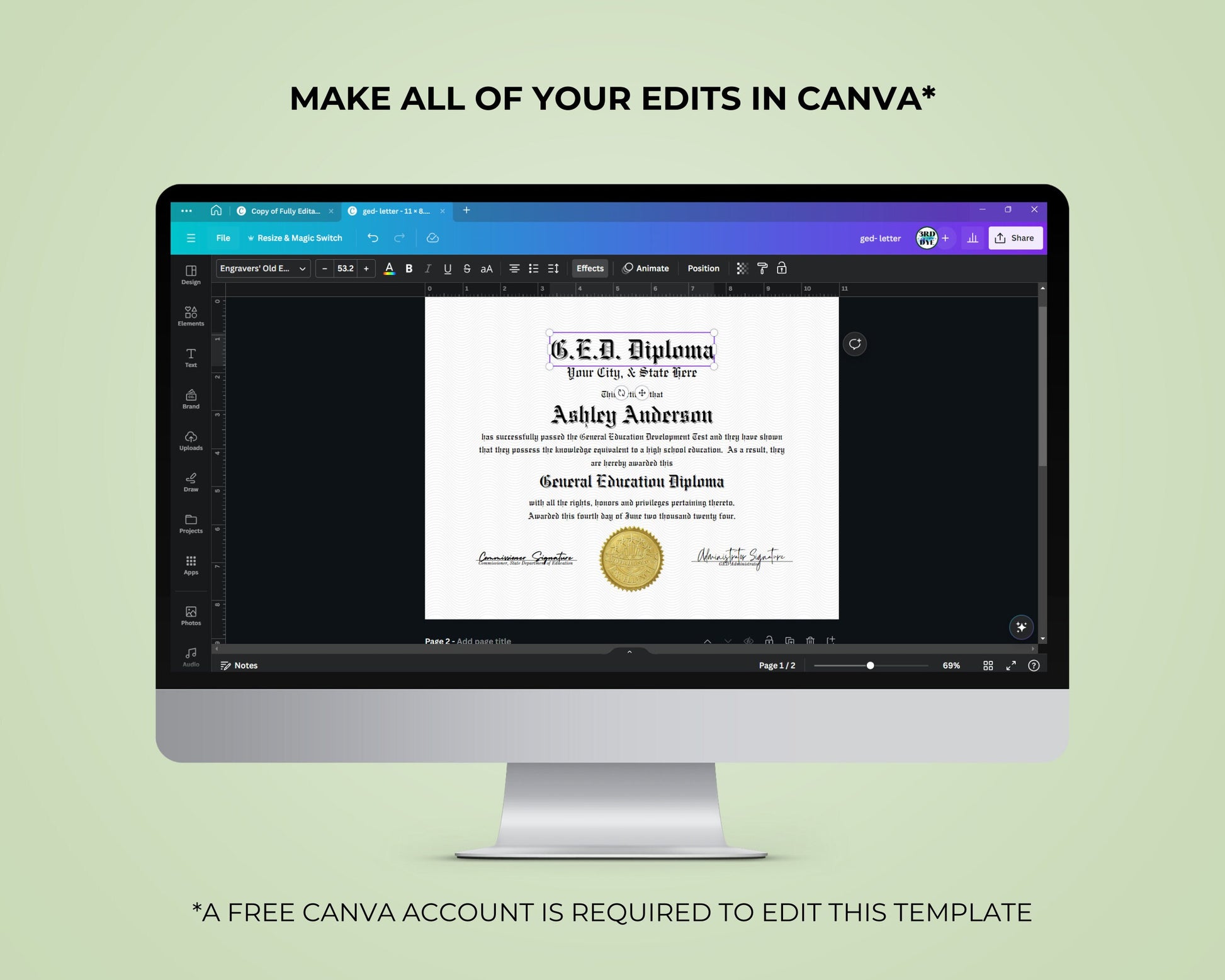 1 PDF containing a link to Straight Title Diploma in A4 Size in Canva for you to edit