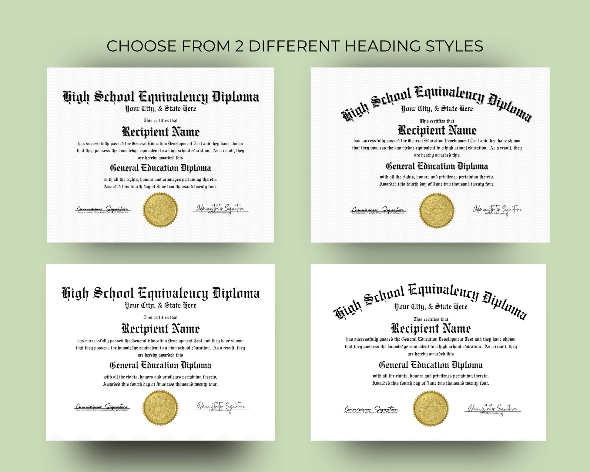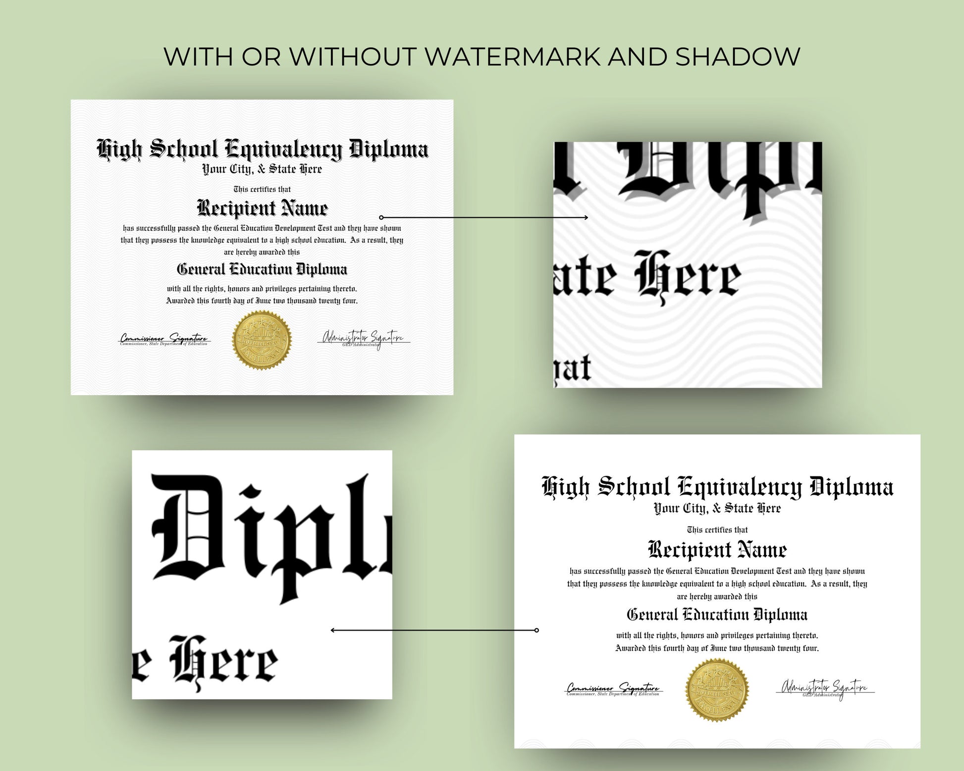 The straight title diplomas are without the watermark and text shadow, a more basic version.