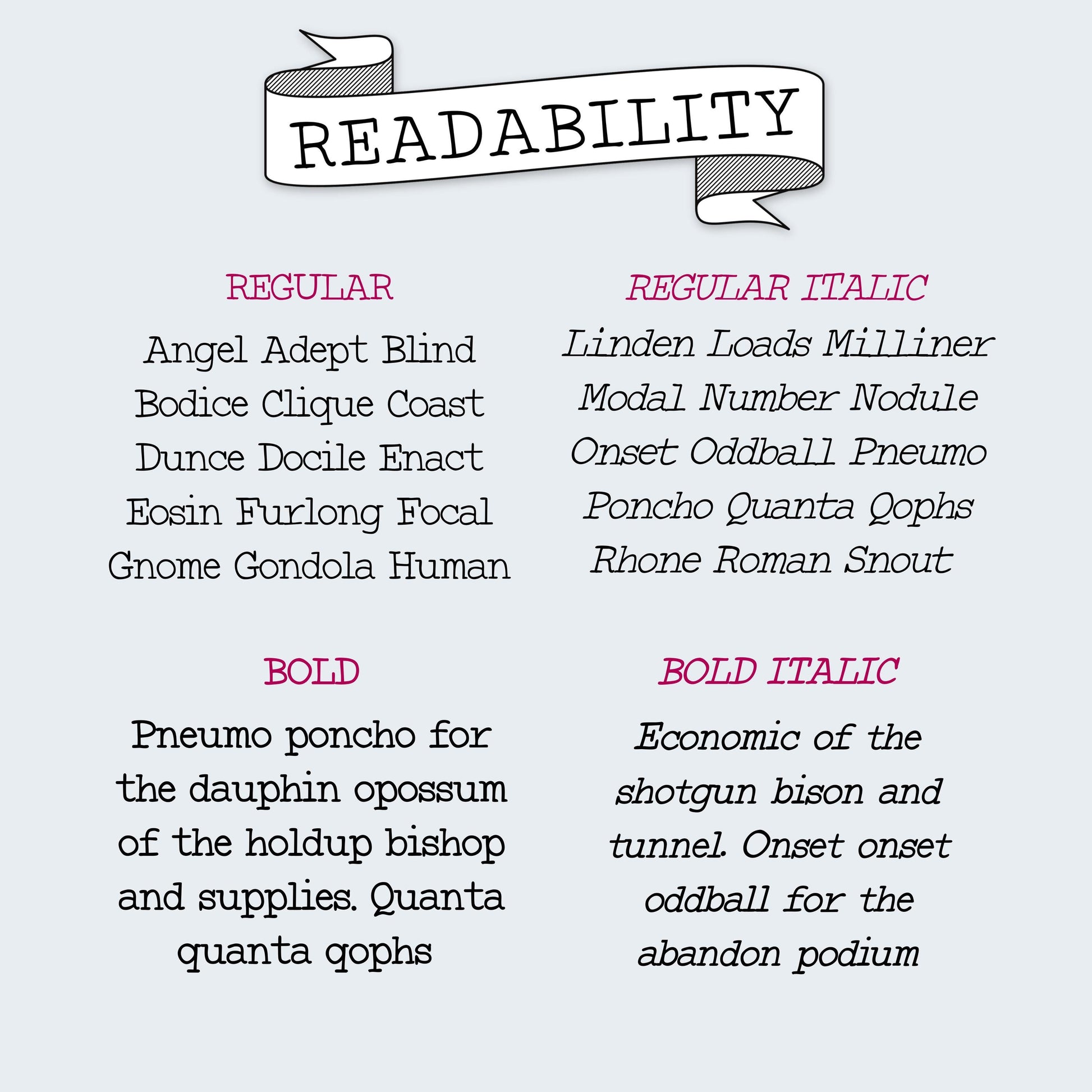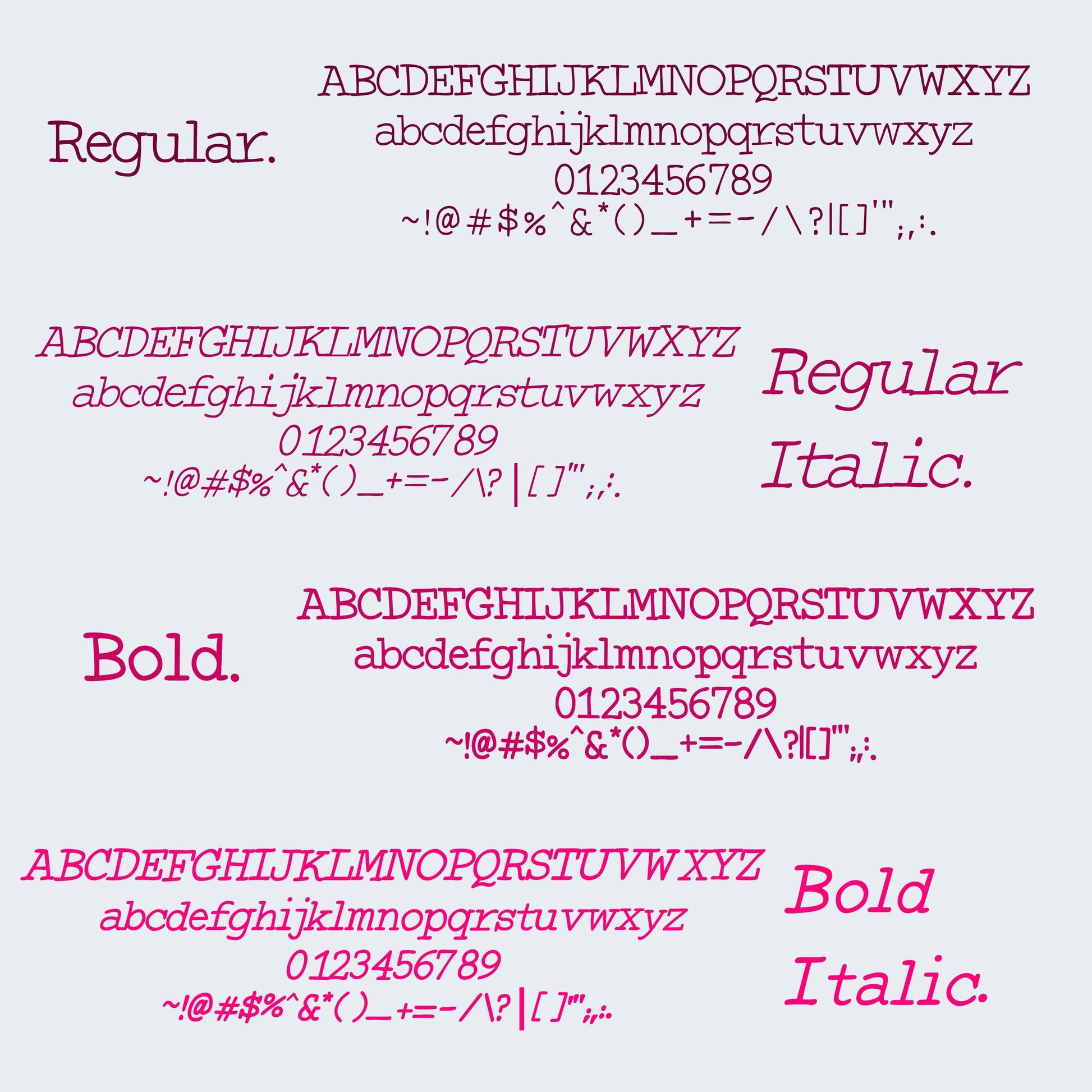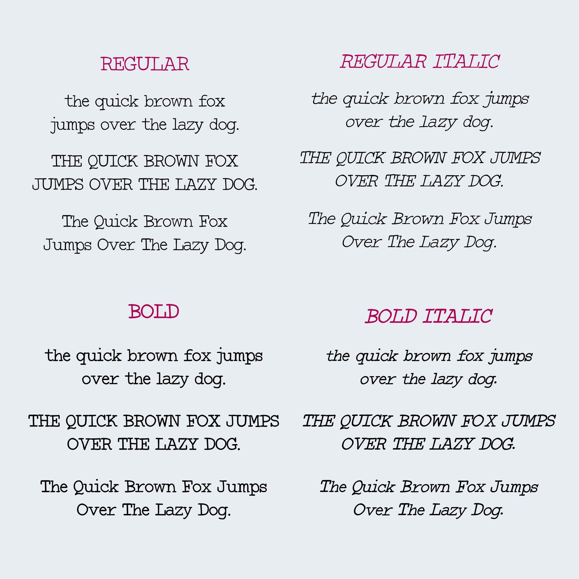 ✔ 8 font files, 4 different styles: Regular, Italic, Bold & Bold Italic font styles in .ttf & .otf