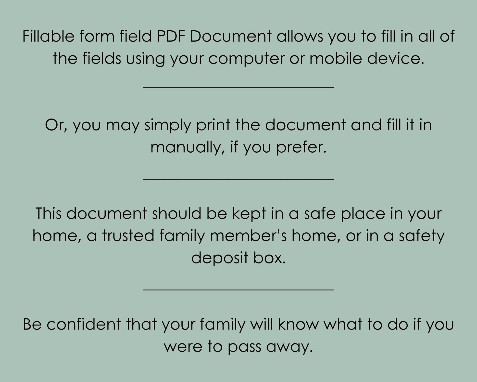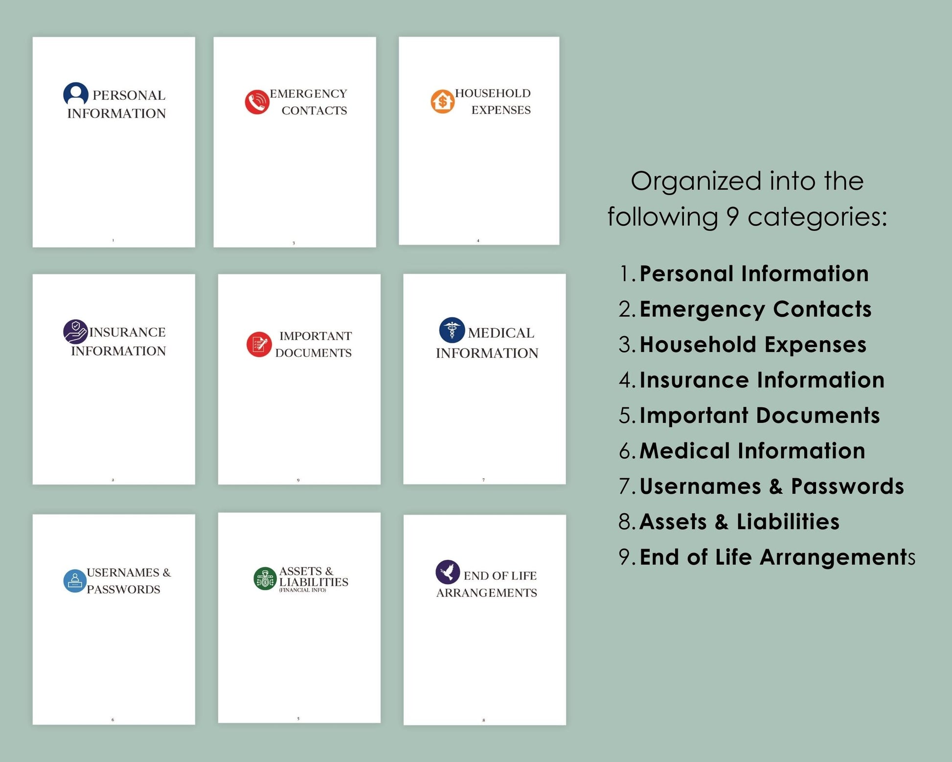 The "In Case of Emergency" Binder enables you to be prepared, stay organized, and have all the necessary information readily accessible in case of emergencies. With this comprehensive life planner, you can have peace of mind knowing that you (and your loved ones) are equipped to handle unforeseen circumstances with ease.