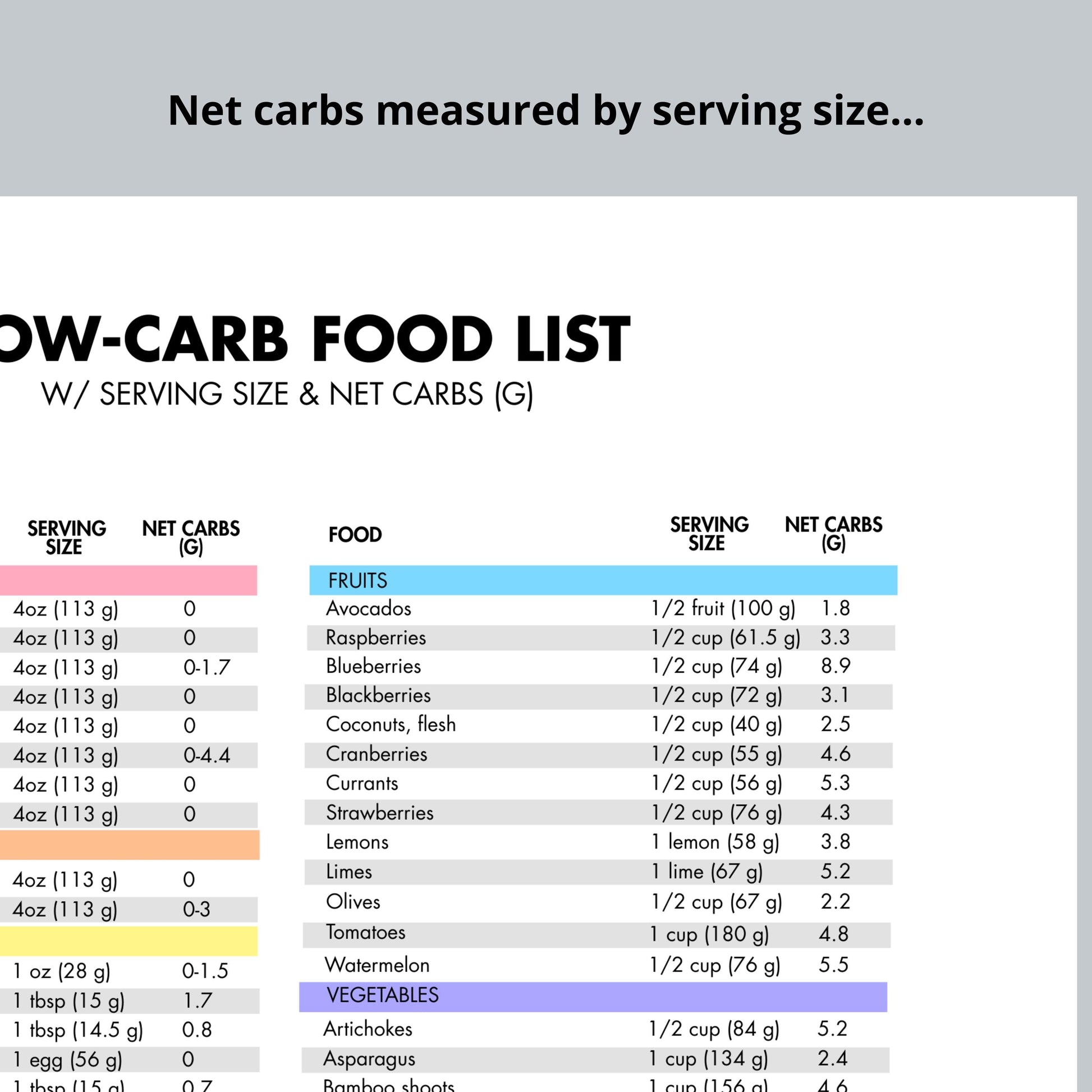 Perfect for keto meal planning, this chart is available in 4 sizes for easy printing.