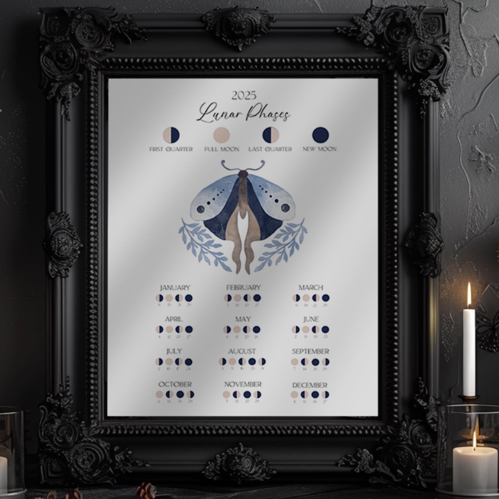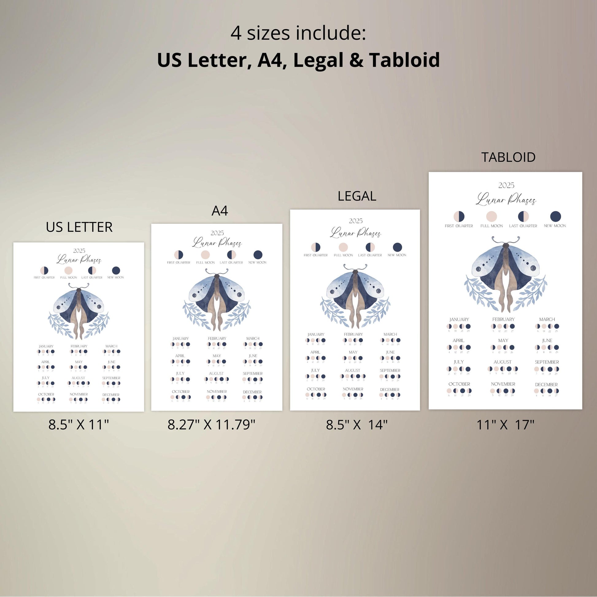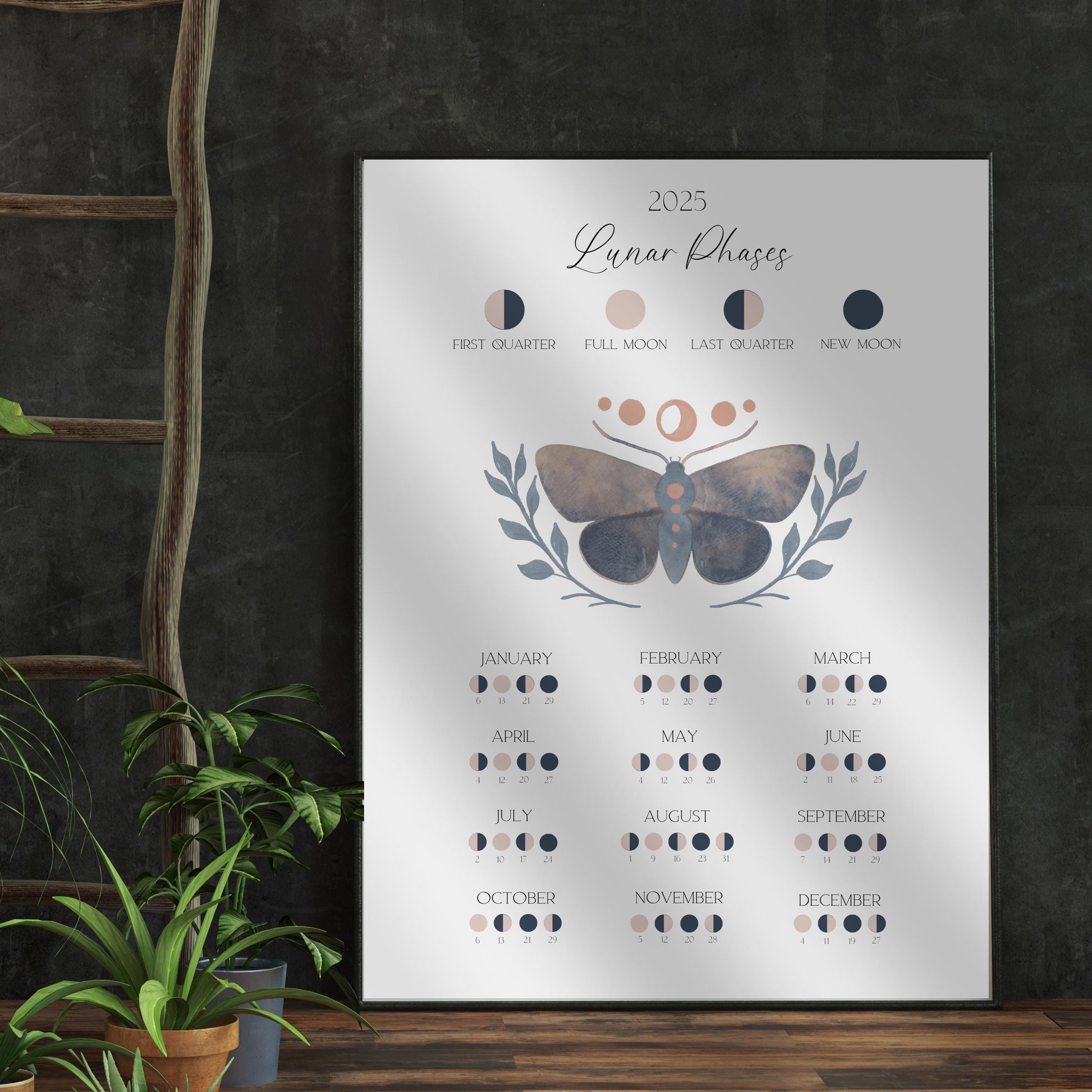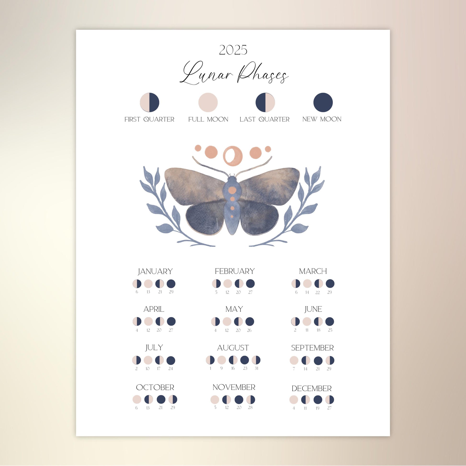 Track the 2025 lunar phases with this printable calendar featuring 3 watercolor designs and 4 size options.