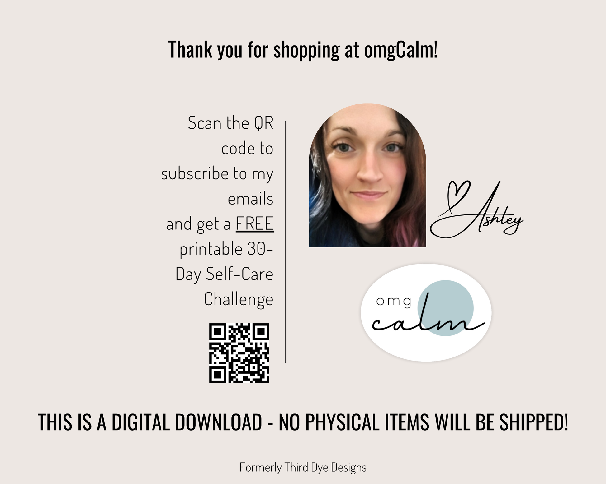 ☛There is a no returns or refunds policy on all digital downloads, however if there is a problem with your purchase or you have questions or need help, please don't hesitate to reach out to me via email at ashley@omgcalm.com and I will do my best to help. If you email me, make sure to put something like, "printables help" in the subject line.