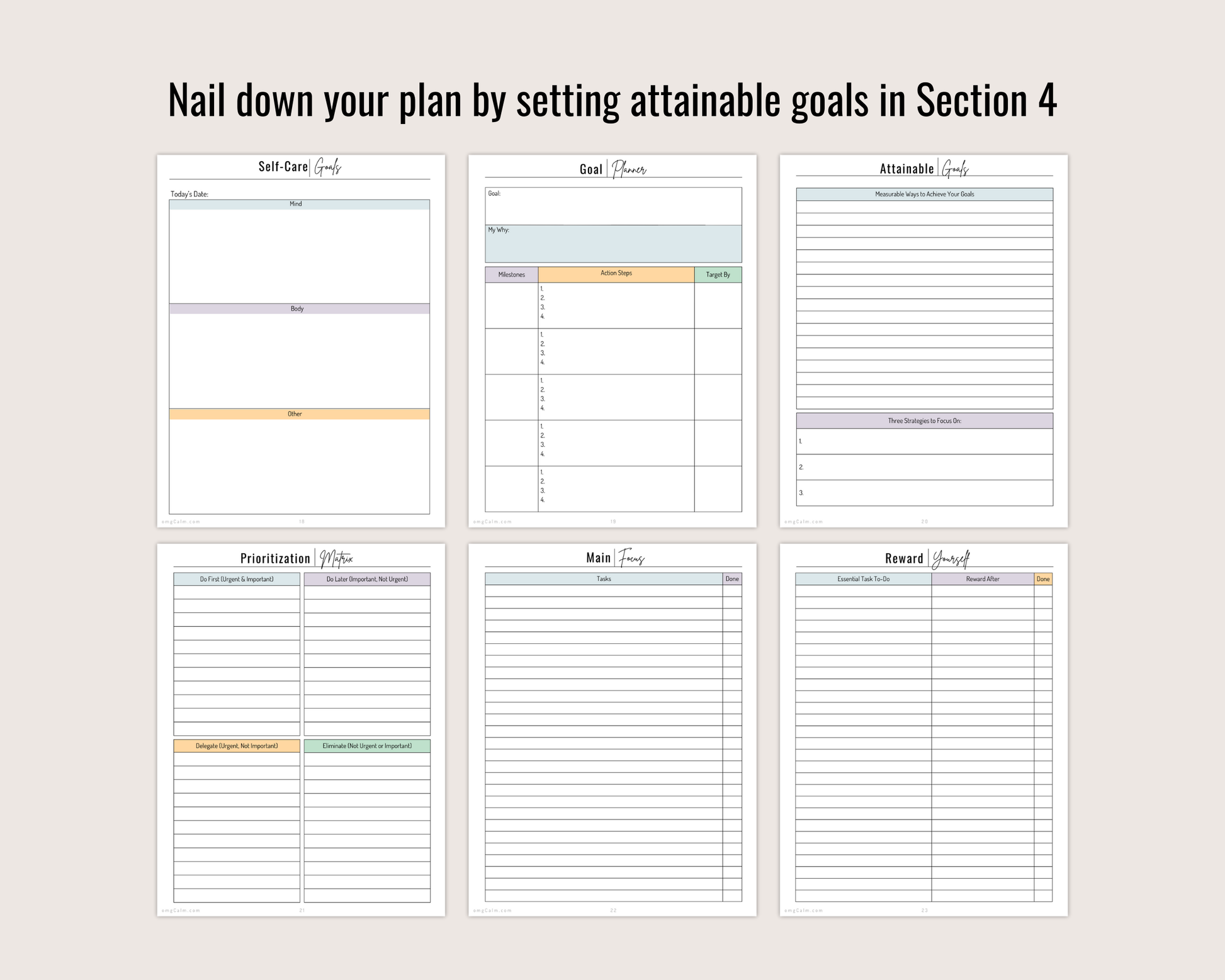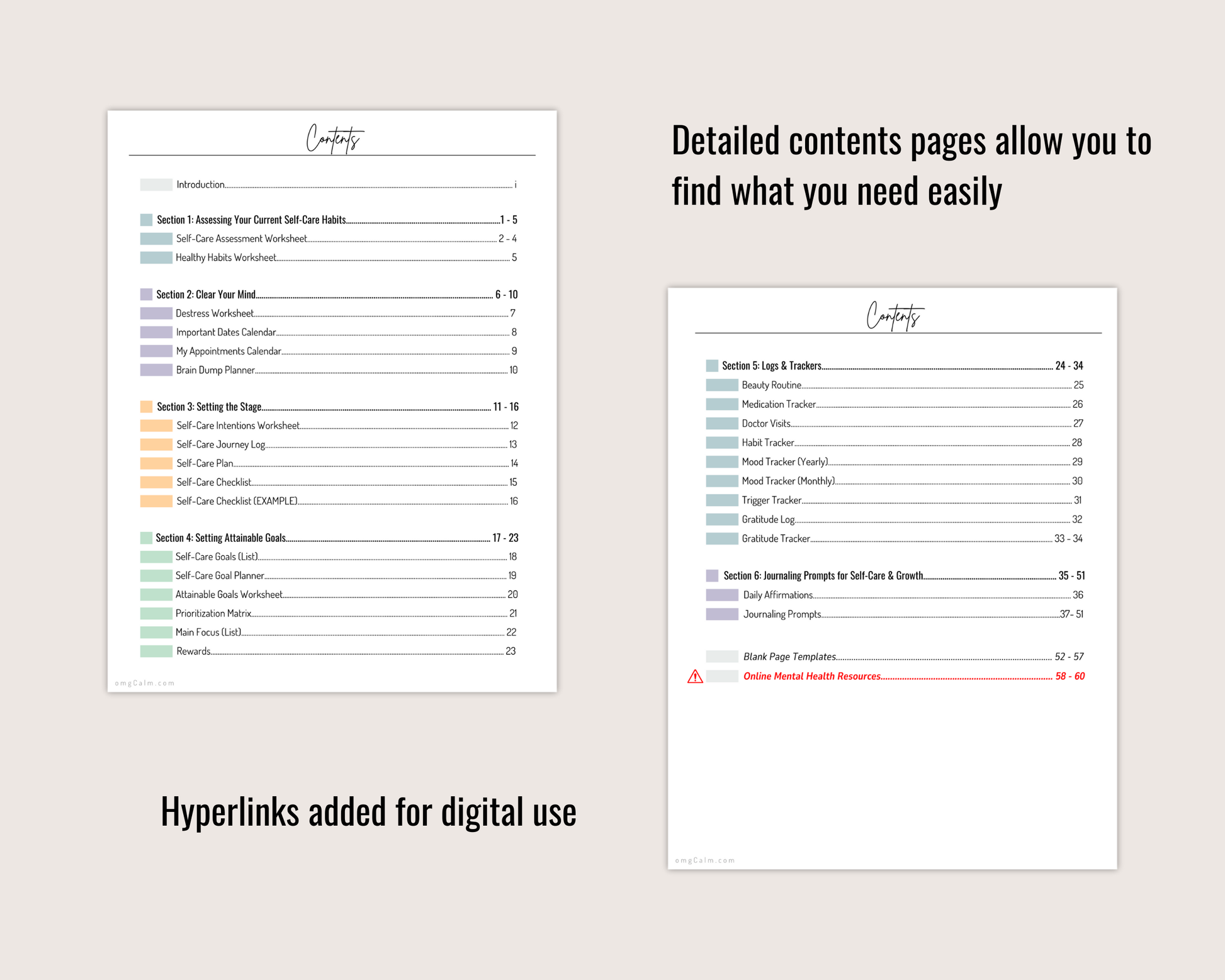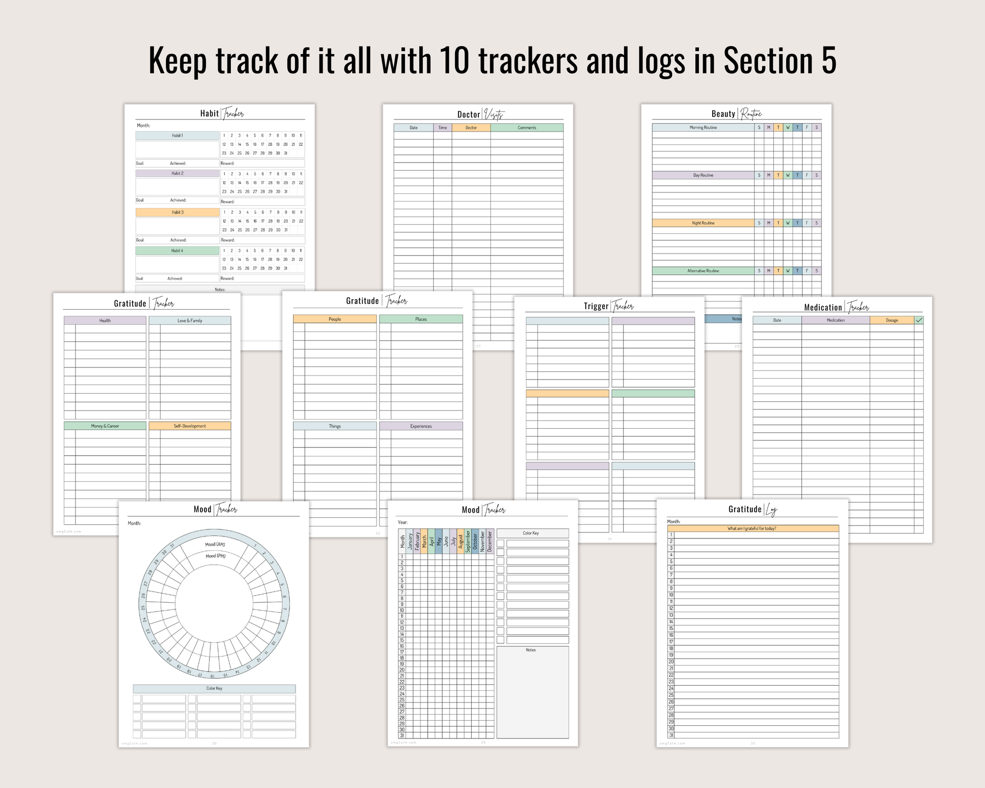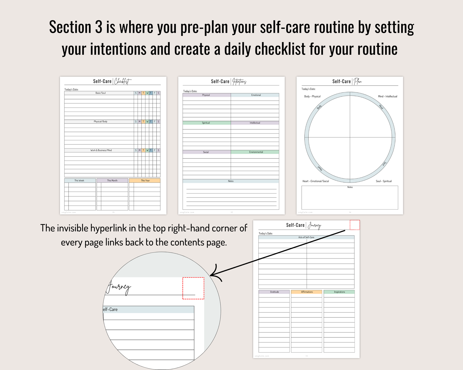 This tool will help you figure out what areas of your life need the most attention and then prompts you to break down your self-care goals, track your moods, new habits, and more!