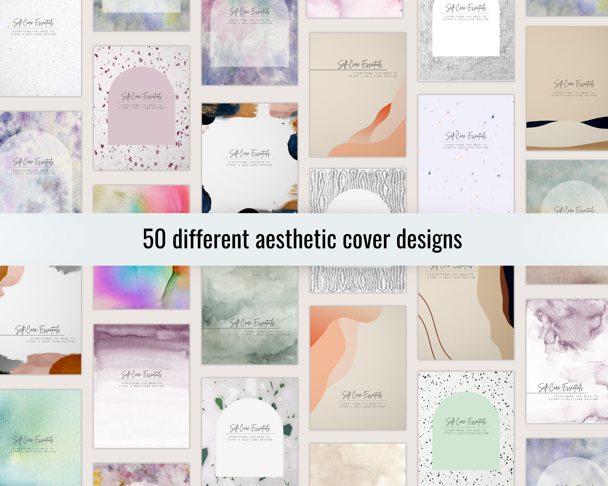 ✔ 1 "selfcareessentials-drivelink.pdf" file containing a link to a shared Google Docs folder with the help file, a "COVERS.pdf" file containing 50 different covers for your workbook, and a folder ("workbooks") containing 1 printable pdf and 1 pdf optimized for digital use.