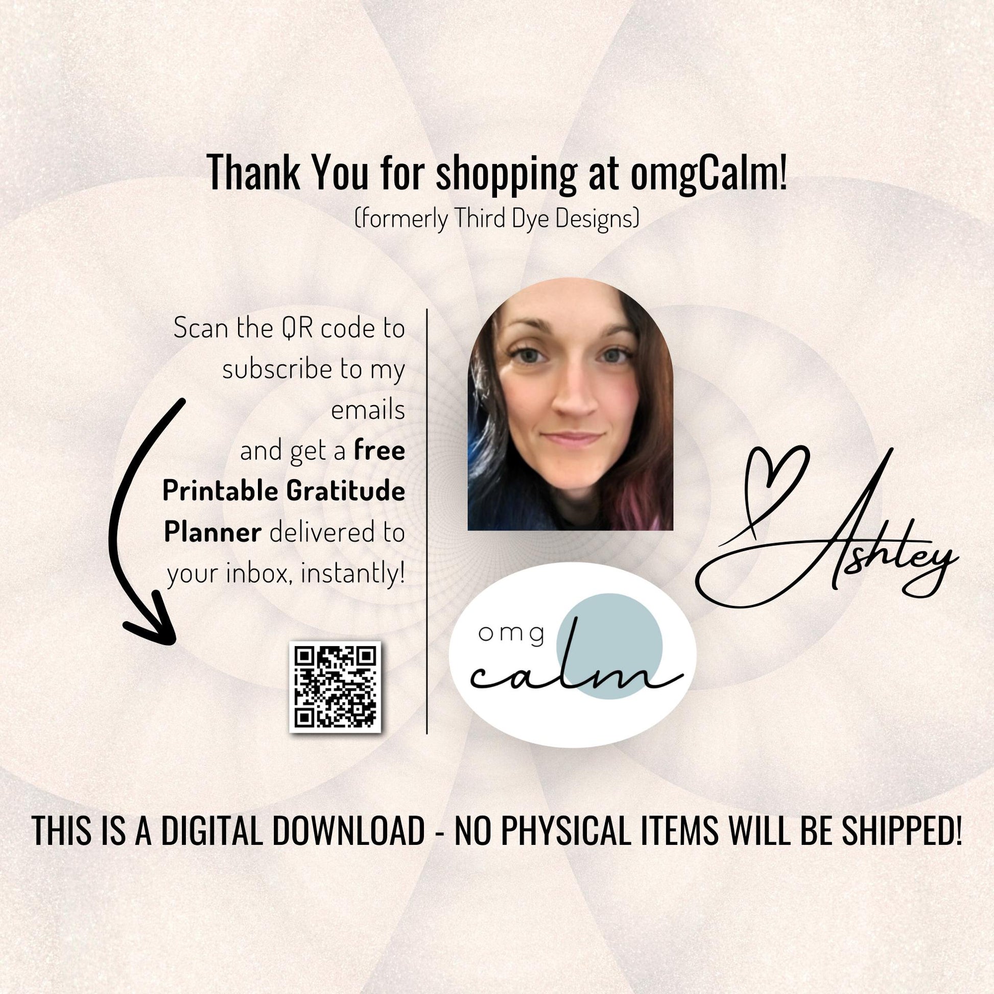 ☛There is a no returns or refunds policy on all digital downloads. However if there is a problem with your purchase or you have questions or need help, please don't hesitate to reach out to me via email at ashley@omgcalm.com and I will do my best to help. If you email me, make sure to put something like, "printables help" in the subject line.